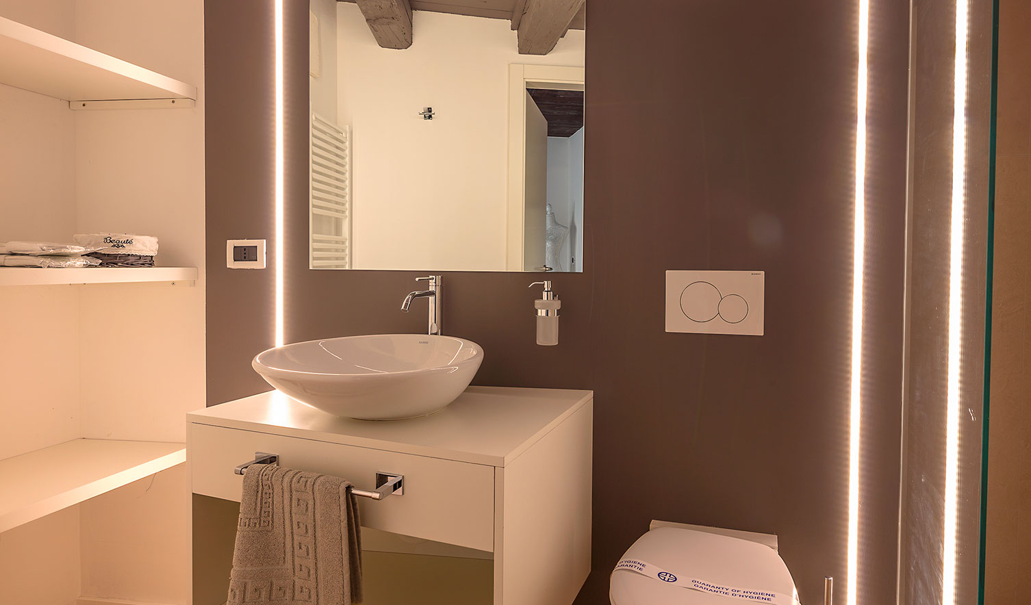 La camera si affaccia sui bellissimi portici di Via del Suffragio, in pieno centro storico. E' dotata di bagno privato ed usufruisce di tutti i servizi sopra elencati. Il parcheggio autosilo Buonconsiglio a c.a. 70/100 mt. dalla struttura è convenzionato al costo di € 15 al giorno o € 9,5 a notte.